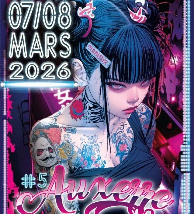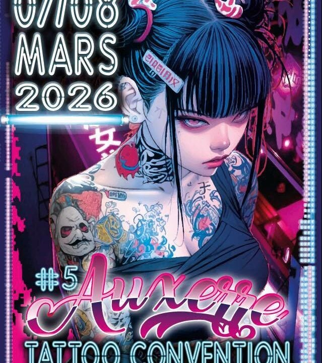 Salon du Tatouage d’Auxerre les 7/8 Mars 2026 à Auxerrexpo ! Retrouvez plus de 80 Artistes, ainsi que des stands marchands, des concours tattoo, du piercing, concerts , shows ,spectacles, food.